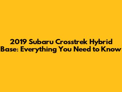 2019 Subaru Crosstrek Hybrid Base: All You Need To Know