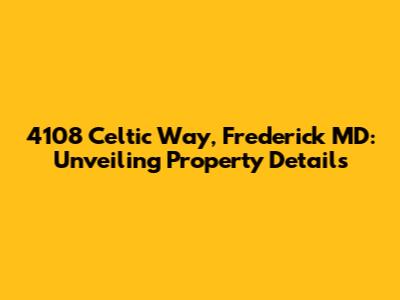 Hey everyone! Today, we're diving deep into the property located at 4108 Celtic Way, Frederick, MD. We're going to explore what makes this place tick, from its location and neighborhood vibe to potential investment opportunities, and everything in between. Whether you're a potential buyer, a curious neighbor, or just love to peek at properties, this is the place to be! Let's get started, shall we?