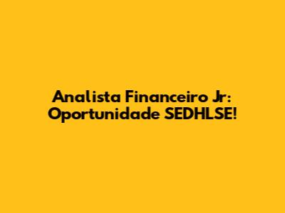 Analista Financeiro Jr: Oportunidade SEDHLSE!