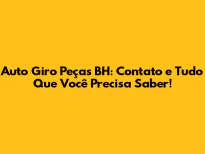 Auto Giro Peças BH: Contato E Tudo Que Você Precisa Saber!