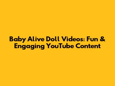 Baby Alive doll videos on YouTube provide a fun and engaging way for kids to enjoy playtime, learn new skills, and express their creativity. With the right approach, these videos can be a valuable addition to your child's entertainment routine. By choosing the right content and practicing responsible viewing habits, you can ensure a positive and enriching experience for your little ones.