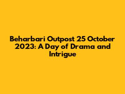 Hey everyone! Let's dive into the exciting events of Beharbari Outpost on October 25, 2023. This day was packed with drama, intrigue, and a whole lot of action that kept us on the edge of our seats. From the first light of dawn to the quiet of the night, the outpost was buzzing with activity, and trust me, you wouldn't want to miss a single moment of it. The day at the Beharbari Outpost was anything but ordinary. It was a day that saw friendships tested, secrets revealed, and the true colors of individuals shown. As the sun began to rise, it cast long shadows over the outpost, hinting at the events that would unfold. Everyone was on alert, and you could feel the tension in the air. The atmosphere was charged with anticipation, a sense that something significant was about to happen. There were tense conversations, hushed whispers, and hurried preparations that filled the morning hours. The day at the Beharbari Outpost was filled with a series of events that would have a lasting impact on everyone involved. The impact was strong. From the early morning hours, the events that unfolded at the outpost kept everyone in a constant state of suspense. Every interaction, every decision, and every secret brought everyone closer to the pivotal moments of the day. The significance of this day extended far beyond the immediate events. It was a day that would shape relationships, determine alliances, and reveal the true nature of the characters involved. This wasn't just another day at the outpost; it was a turning point. As the day progressed, the stakes got higher, and the tension mounted. There were unexpected alliances formed, shocking betrayals, and unexpected twists that kept everyone guessing. Every character was tested, every relationship put to the limit. The day at the outpost was a series of dramatic events. The events of October 25, 2023, will be remembered for the rest of their lives. It was a day that changed the lives of everyone involved, and their actions had far-reaching consequences. So, grab a seat, and let's recap the highlights of this unforgettable day at the Beharbari Outpost!