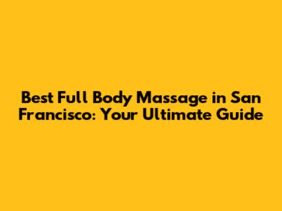 Hey guys! If you're looking for the ultimate relaxation experience in the city by the bay, you've landed in the right place. We're diving deep into the world of full body massages in San Francisco, exploring everything from where to find the best spas to the different massage techniques available. San Francisco is a city known for its diverse culture and commitment to wellness, making it a fantastic destination for anyone seeking a rejuvenating massage. Whether you're a local resident or just visiting, finding a top-notch massage can significantly enhance your well-being. So, let's get started on this journey to discover the best full body massages San Francisco has to offer!