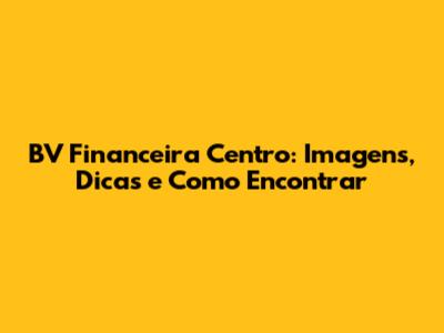 Como Encontrar a BV Financeira Centro?
