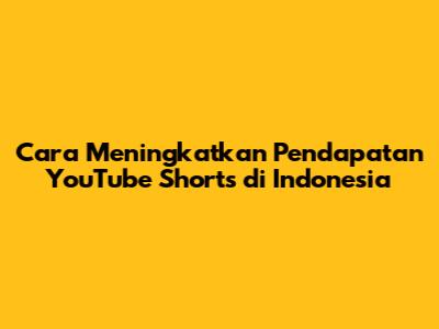 Cara Meningkatkan Pendapatan YouTube Shorts Di Indonesia