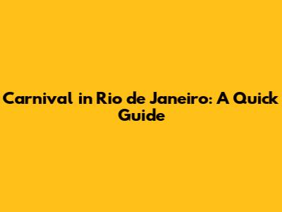 Carnival In Rio De Janeiro: A Quick Guide