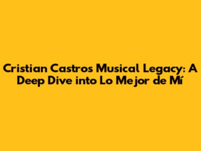Alright, let's rewind and get some context, shall we? "Lo Mejor de MÃ" was released in 1997, a time when Latin pop was absolutely booming. Cristian Castro, already a well-established artist, was ready to take things to the next level. This album wasn't just another release; it was a carefully crafted project designed to showcase his vocal talents and emotional range. The selection of songs was meticulous, with each track chosen to tell a story or evoke a specific feeling. The production quality was top-notch, with arrangements that blended pop sensibilities with Latin rhythms, resulting in a sound that was both contemporary and timeless. The album perfectly captures the heart and soul of Cristian Castro as an artist, and the album is filled with songs that are not only beautiful but also timeless. The entire album is a testament to the skill and talent of Cristian Castro, and the selection of songs has had a lasting impact. The release of "Lo Mejor de MÃ" was a pivotal moment in his career, cementing his status as a major player in the Latin music industry. The production value of the album was superb. With the right selection of songs, it’s no wonder that "Lo Mejor de MÃ" became so popular, and it's an important part of Latin pop music. The songs are well-written with beautiful lyrics. The success of the album and the songs on the album only add to the legacy that it has created. The album is a beautiful compilation of songs that have captivated audiences. The album showcases his amazing talent as a singer. The songs on the album speak to the emotional connection he has with his listeners. The album is a beautiful masterpiece and a must-listen for any music lover. The album cemented his status as a leading figure in Latin pop music, and the songs continue to resonate with listeners. The music is a timeless collection that combines pop and Latin rhythms.
