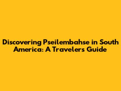 Discovering Pseilembahse In South America: A Traveler's Guide