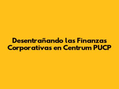 Finanzas Corporativas En Centrum PUCP: Una Guía