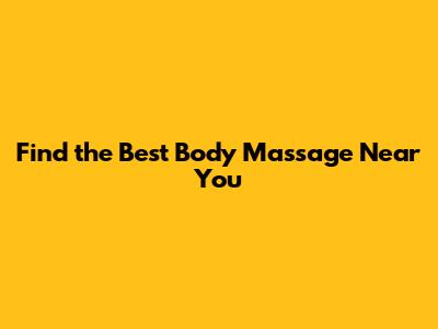 Find The Best Body Massage Near You