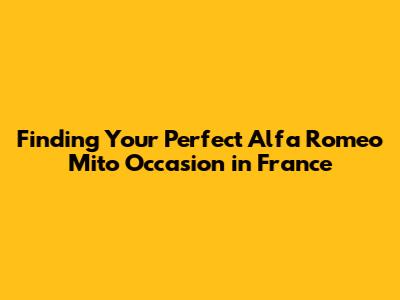 Hey guys! So, you're on the hunt for a stylish and zippy Alfa Romeo Mito in France, huh? Awesome choice! The Mito is a fantastic little car, perfect for zipping around town or cruising through the countryside. But, let's be real, buying a used car can feel a bit like navigating a maze. Don't worry, I'm here to help you unlock some useful insight and provide you with a comprehensive guide. In this article, we'll dive deep into everything you need to know about finding an Alfa Romeo Mito occasion in France, from where to look to what to watch out for. Ready to roll?