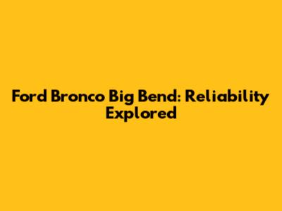Ford Bronco Big Bend: Reliability Explored