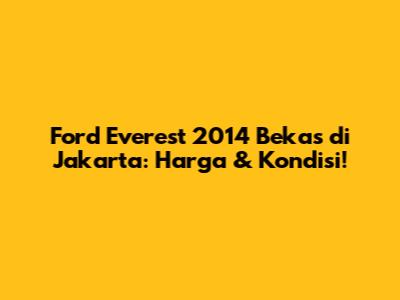 Hey guys! Lagi cari mobil SUV yang tangguh dan nyaman buat keluarga di Jakarta? Ford Everest 2014 bekas bisa jadi pilihan yang menarik nih! Apalagi kalau kalian tinggal di Jakarta, pasti butuh mobil yang bisa diandalkan untuk menghadapi kemacetan dan berbagai kondisi jalan. Nah, di artikel ini, kita bakal bahas tuntas tentang Ford Everest 2014 bekas di Jakarta, mulai dari harga, kondisi, sampai tips memilih yang terbaik. Jadi, simak terus ya!