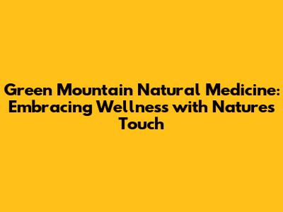 Hey folks! Ever heard of Green Mountain Natural Medicine? If you're in the Green Mountain State (Vermont, for those not in the know), or even just curious about natural wellness, you're in for a treat. This article is all about Green Mountain Natural Medicine, a place where the power of nature meets cutting-edge wellness practices. We'll dive deep into what makes them special, from their approach to medical marijuana to their commitment to holistic health. Ready to explore? Let's get started!