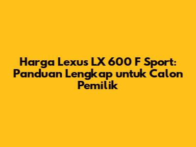 Informasi mengenai harga Lexus LX 600 F Sport terbaru sangat penting bagi calon konsumen. Harga dapat bervariasi tergantung pada beberapa faktor, seperti pilihan warna, tambahan fitur opsional, dan kebijakan harga dari dealer setempat. Namun, secara umum, harga Lexus LX 600 F Sport berada di segmen SUV mewah dengan harga yang cukup tinggi. Untuk mendapatkan informasi harga yang paling akurat dan up-to-date, disarankan untuk menghubungi dealer resmi Lexus terdekat. Mereka akan memberikan informasi harga terbaru, penawaran khusus, serta detail mengenai paket penjualan yang tersedia.