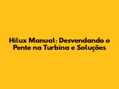 Hilux Manual: Desvendando O Pente Na Turbina E Soluções