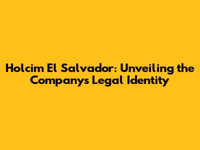 Holcim El Salvador: Unveiling The Company's Legal Identity