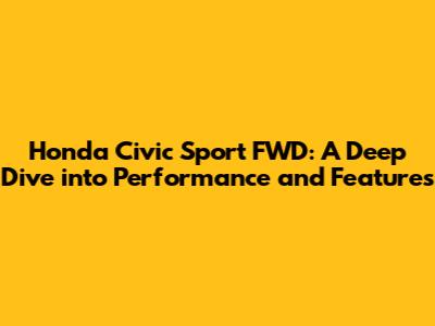 Hey guys! Let's dive into the Honda Civic Sport FWD, a car that's been making waves in the automotive world. If you're considering getting one, or you're just curious about what all the hype is about, you've come to the right place. We're going to break down everything from its performance and features to its overall value.