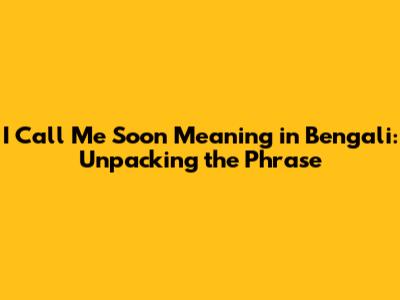 I Call Me Soon Meaning In Bengali: A Simple Guide