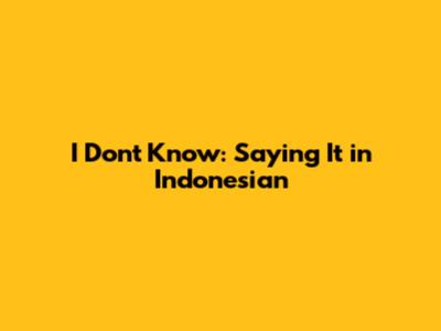 I Don't Know: Saying It In Indonesian
