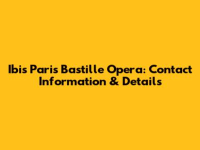 Ibis Paris Bastille Opera: Contact Information & Details