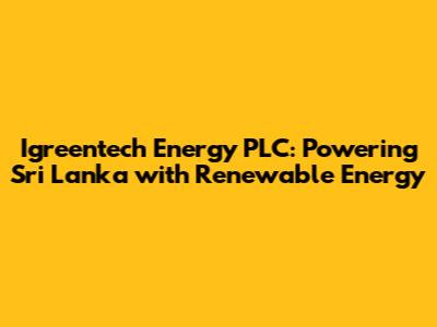 Igreentech Energy PLC: Sri Lanka's Renewable Energy Leader