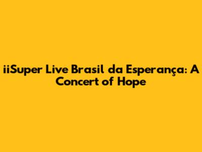 Hey music lovers and charitable hearts! Let's dive into the amazing world of the iiSuper Live Brasil da Esperança, a spectacular event that blends the power of music with the spirit of giving. If you're wondering what this is all about, you're in the right place! We'll explore everything from the incredible artists who graced the stage to the heartfelt cause behind it all. Get ready to be inspired and maybe even discover your next favorite band or charity to support. This isn't just any concert; it's a movement, a celebration, and a beacon of hope, all rolled into one unforgettable experience. So, grab your virtual backstage pass, and let's get started!