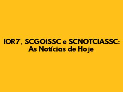 IOR7, SCGOISSC E SCNOTCIASSC: As Notícias De Hoje