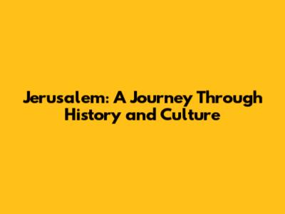 Jerusalem: A Journey Through History And Culture
