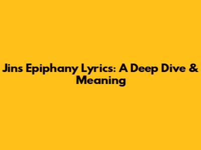 Jin's Epiphany Lyrics: A Deep Dive & Meaning
