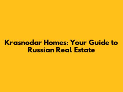 Krasnodar Homes: Your Guide To Russian Real Estate