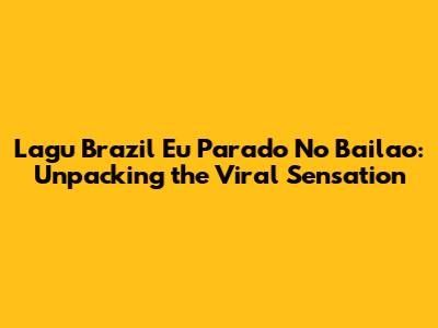 Hey guys! Ever found yourself humming a tune you can't quite place, especially one that seems to be everywhere online? Chances are, you might have stumbled upon the infectious beats of "Lagu Brazil Eu Parado No Bailao." This song has taken the internet by storm, and if you're scratching your head wondering what all the fuss is about, you've come to the right place. Let’s dive deep into the catchy melody, the cultural context, and why it’s become such a viral sensation.