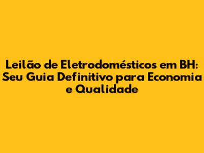 Leilão De Eletrodomésticos Em BH: Guia Completo Para Economizar