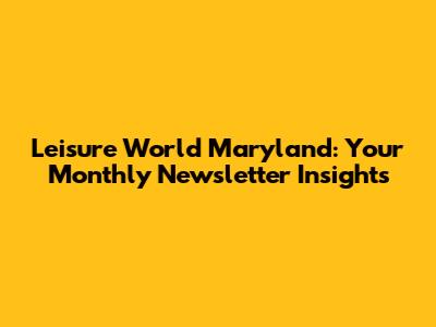 Leisure World Maryland: Your Monthly Newsletter Insights