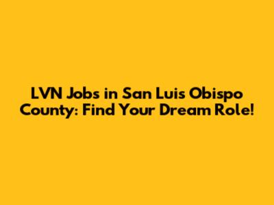 LVN Jobs In San Luis Obispo County: Find Your Dream Role!