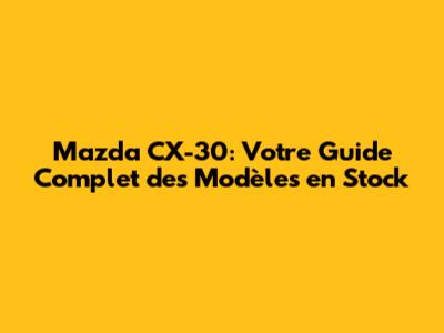 Mazda CX-30: Votre Guide Complet Des Modèles En Stock