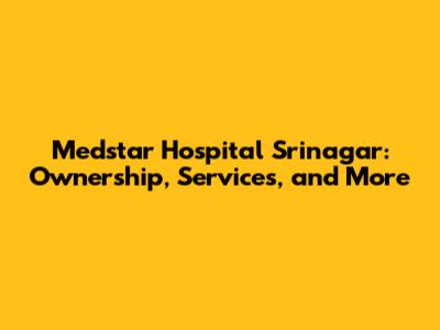Medstar Hospital Srinagar: Ownership, Services, And More