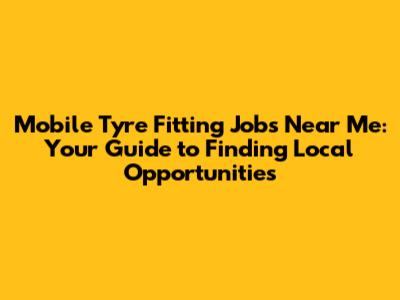Mobile Tyre Fitting Jobs: Find Openings Near You