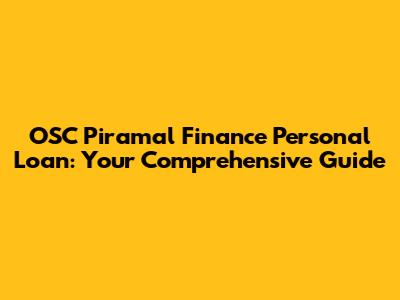 OSC Piramal Finance Personal Loan: Your Comprehensive Guide