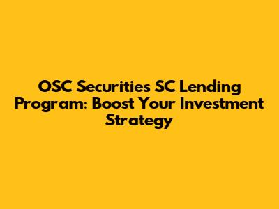 Are you looking to amplify your investment potential? The OSC Securities SC Lending Program could be the key to unlocking new opportunities. This program is designed to provide investors with the leverage they need to maximize their returns. Let's dive into the specifics of how this program works and how you can benefit from it.