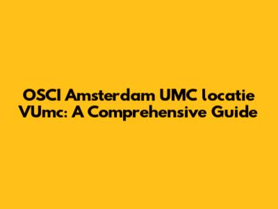 OSCI At Amsterdam UMC, VUmc Location: What You Need To Know