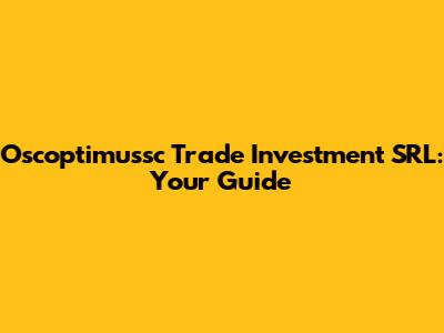 Oscoptimussc Trade Investment SRL: Your Guide