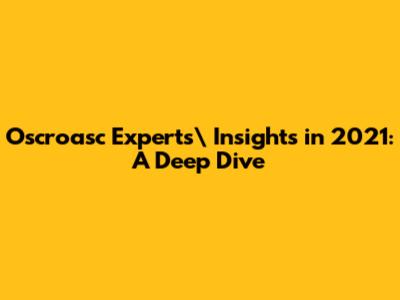 Oscroasc Experts' Insights In 2021: A Deep Dive