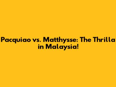 Pacquiao Vs. Matthysse: The Thrilla In Malaysia!