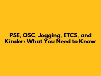 PSE, OSC, Jogging, ETCS, And Kinder: What You Need To Know