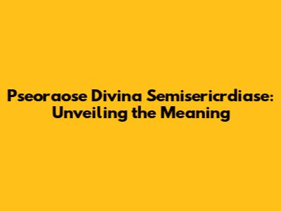 Pseoraose Divina Semisericrdiase: Unveiling The Meaning