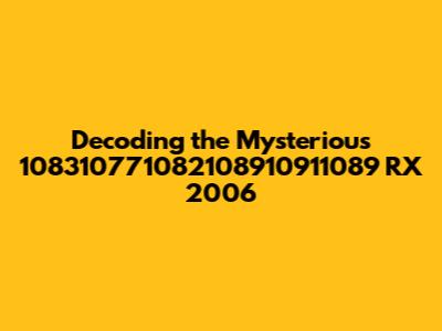 Alright, guys, let's dive into this intriguing query: "108310771082108910911089 RX 2006." At first glance, it looks like a jumble of numbers and letters, but let's break it down and see if we can make some sense of it. Understanding the query requires a bit of detective work, and that's exactly what we're going to do. We'll explore possible interpretations, from potential misspellings to encoding quirks, and consider the context of "RX 2006" to try and decipher the meaning behind this numeric sequence. This kind of problem is not uncommon, especially when dealing with technical data or specific models. It's all about figuring out the underlying code or reference. So, buckle up, and let's get started on this decoding adventure! We're going to try to turn this mysterious string into something understandable and useful. Remember, no mystery is too great to solve if we approach it with the right mindset and tools. Let's unravel this thing together.