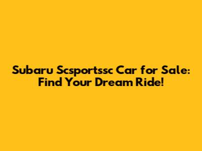 Subaru Scsportssc Car For Sale: Find Your Dream Ride!