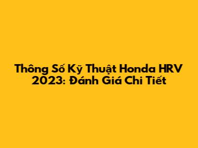 Thông Số Kỹ Thuật Honda HRV 2023: Đánh Giá Chi Tiết