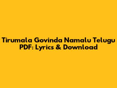 Where to Download Tirumala Govinda Namalu Telugu PDF